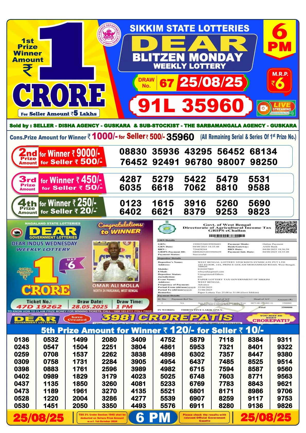 Monday Mega Lottery Sambad Kick-start your week with the Monday draw. View results and prize